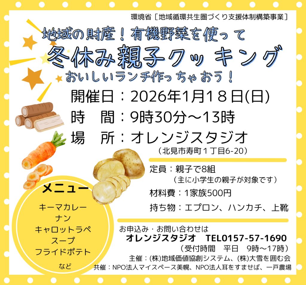 有機野菜を使った「冬休み親子クッキング」を開催しました。